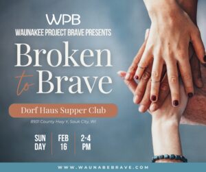 Join Waunakee Project Brave for our inspiring Community Brave Gathering events, where we feature local speakers who share their powerful stories of hope, resilience, and triumph over adversity. These free events, open to individuals aged 16 and up, provide a unique opportunity to connect with your community and find strength in shared experiences. Space is limited, so reserve your spot today by emailing waunabebrave@gmail.com or texting 608-279-4041. Don’t miss this chance to be part of a gathering that celebrates the human spirit and the power of bravery.